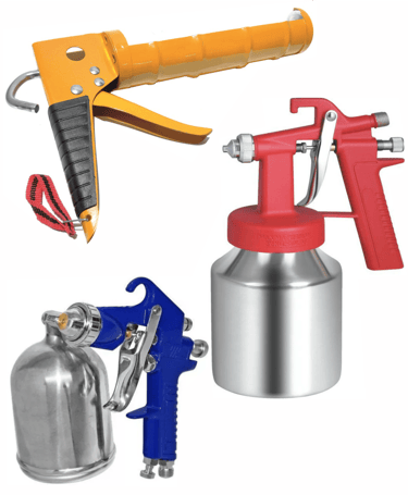 Herramientas de Aplicación: Precisión en cada detalle Lleva tus proyectos al siguiente nivel con nuestra línea de herramientas profesionales. Desde aerógrafos diseñados para trabajos artísticos de alta fidelidad y detalles minuciosos, hasta pistolas para pintar que garantizan una cobertura uniforme y un ahorro óptimo de material. Además, nuestras pistolas de calafateo ofrecen un control total y un flujo constante, asegurando que nuestras siliconas se apliquen con la limpieza y sellado que tus trabajos exigen.